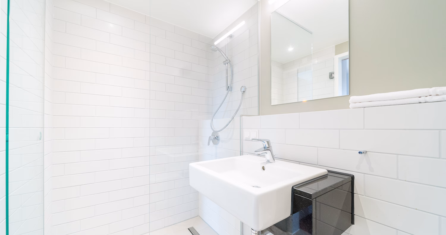 - Bathroom: The sleek, modern bathroom features a walk-in shower, designed for a luxurious experience.